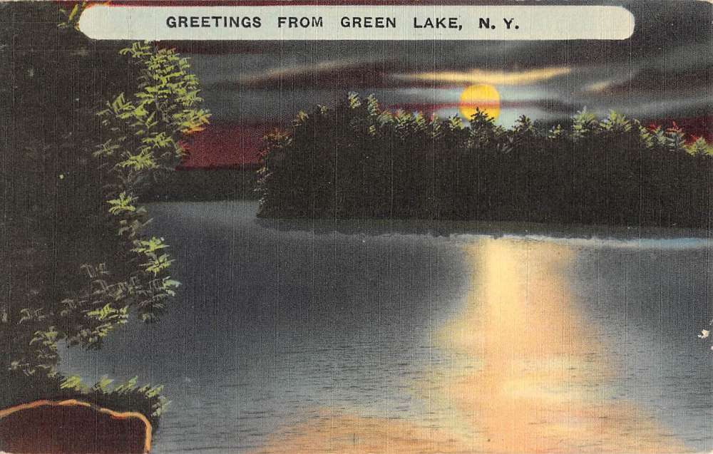 Green Lake New York Moonlight Waterfront Greeting Antique Postcard K80745