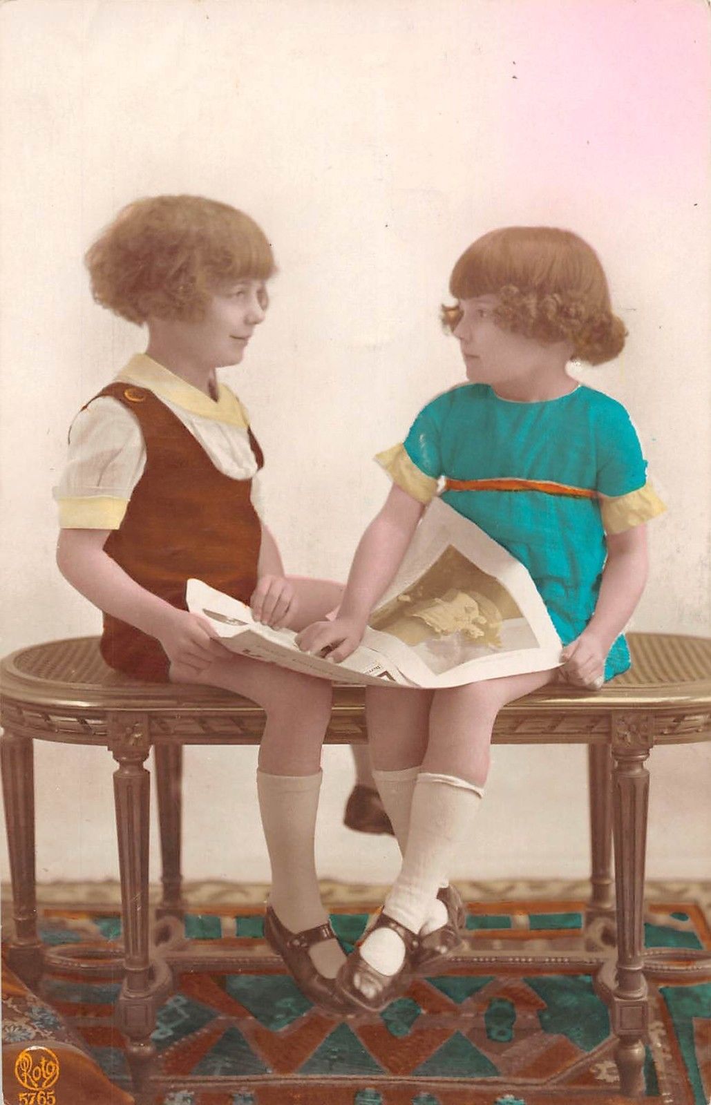 Girls with Roses Tinted Real Photo Antique Postcard (J29164)