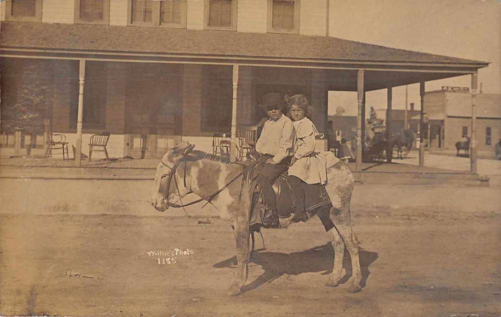 Street Scene Children Riding Donkey Real Photo Antique Postcard J75922