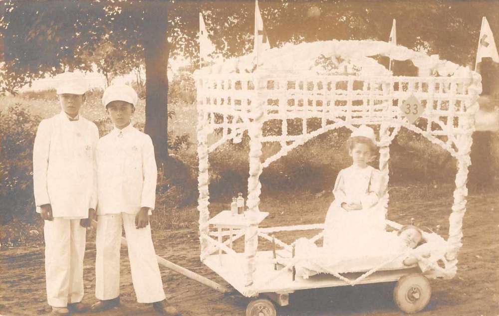 Children Parade Float Red Cross Hospital Bed Scene Real Photo Postcard J75630
