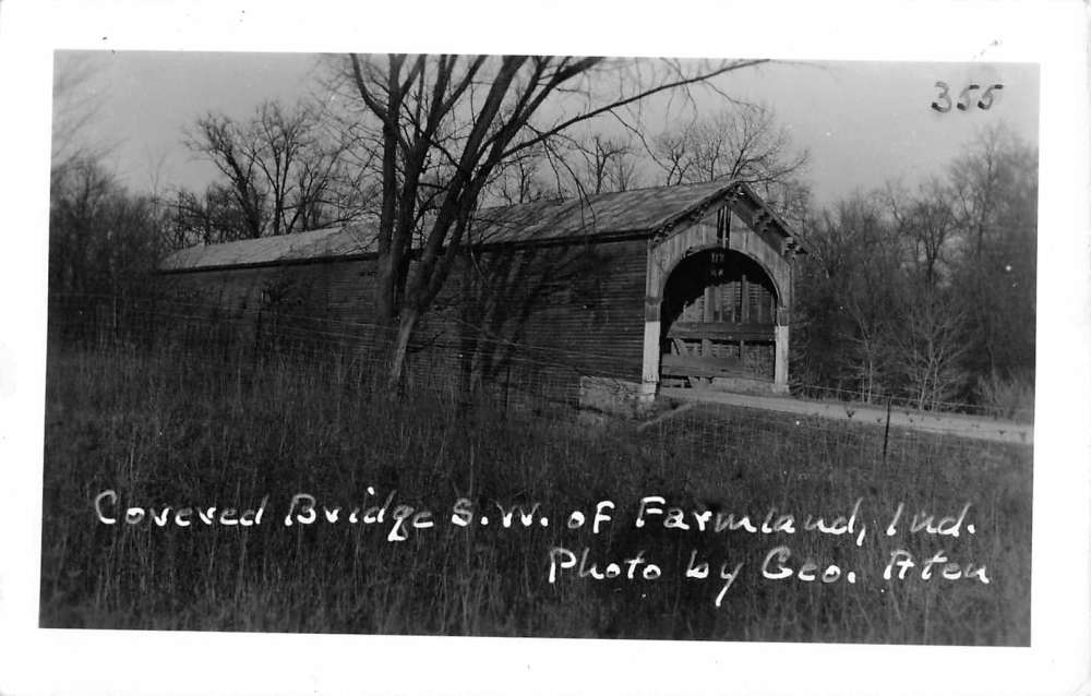 Farmland Indiana Covered Bridge Real Photo Antique Postcard K84557