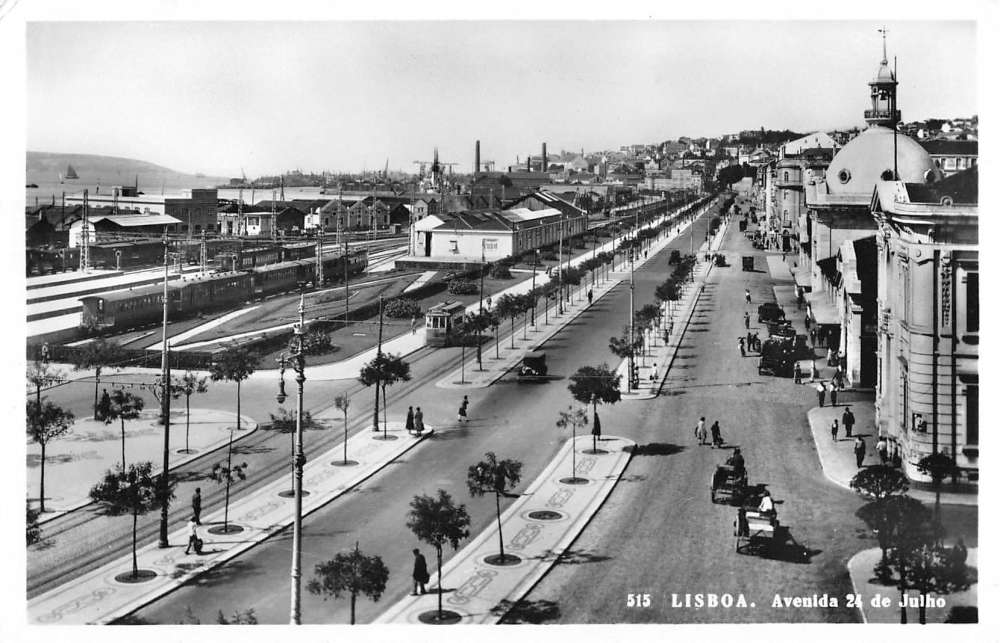 Lisboa Portugal Avenue Street Scene Real Photo Antique Postcard K83506