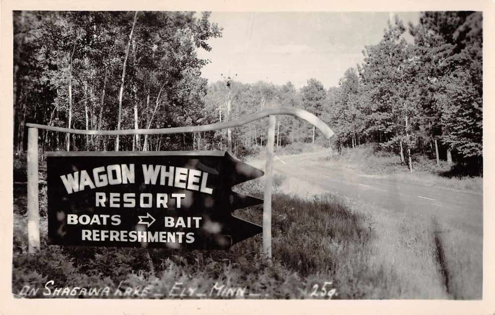 Ely Minnesota Wagon Wheel Resort Entrance Sign Real Photo Postcard J68499