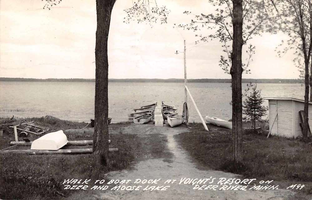 Deer River Minnesota Voight’s Resort Boat Dock Real Photo Postcard J68513