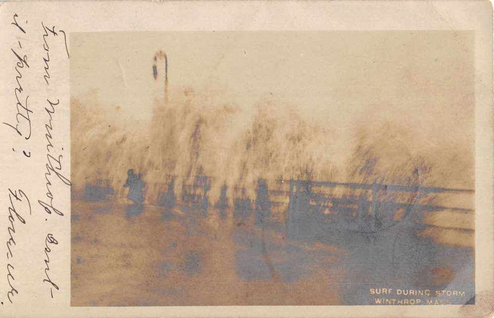 Winthrop Massachusetts Surf During Storm Real Photo Antique Postcard K68101