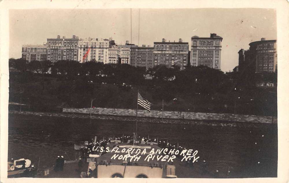 North River New York USS Florida Anchored Real Photo Antique Postcard K68126