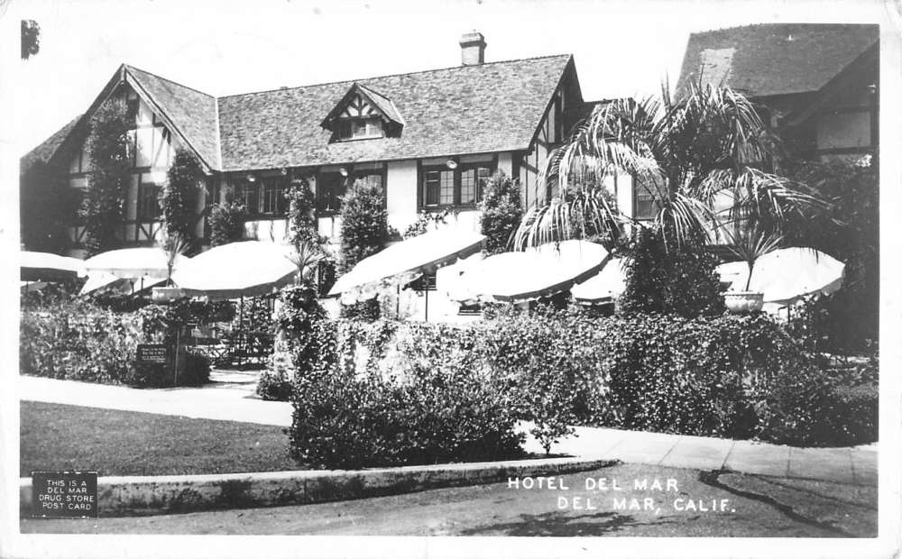 Del Mar California Hotel Entrance Street View Real Photo Antique Postcard K17811