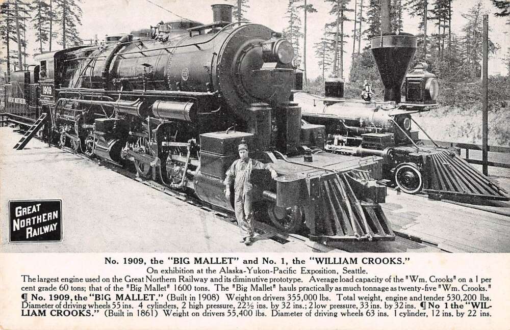 Great Northern Railway Train Engines Alaska Yukon Expo Vintage Postcard AA30248