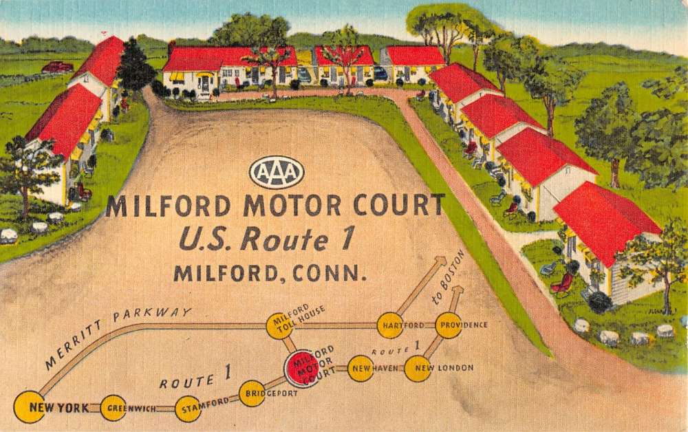 Milford Connecticut Motor Court Birdseye Linen Antique Postcard K17735