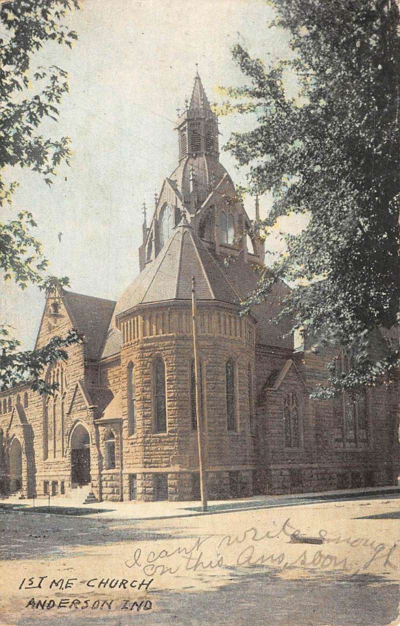 Anderson Indiana First ME Church Street View Antique Postcard K84083