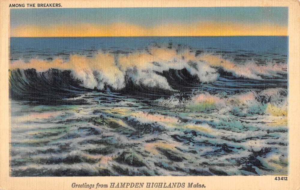 Hampden Highlands Maine Breaker Waves Antique Postcard K89732