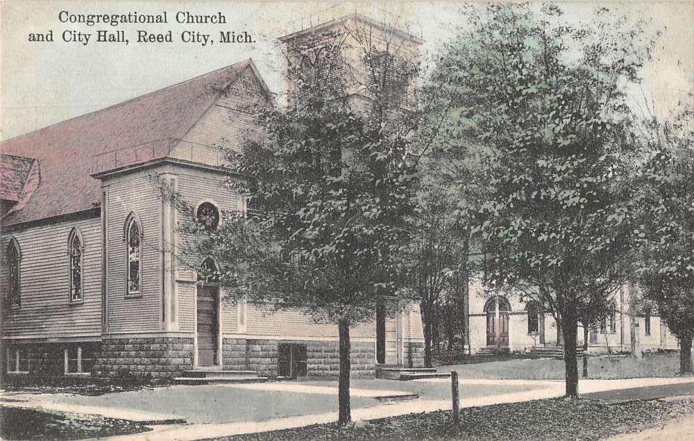 Reed City Michigan Congregational Church and City Hall Vintage Postcard AA38959