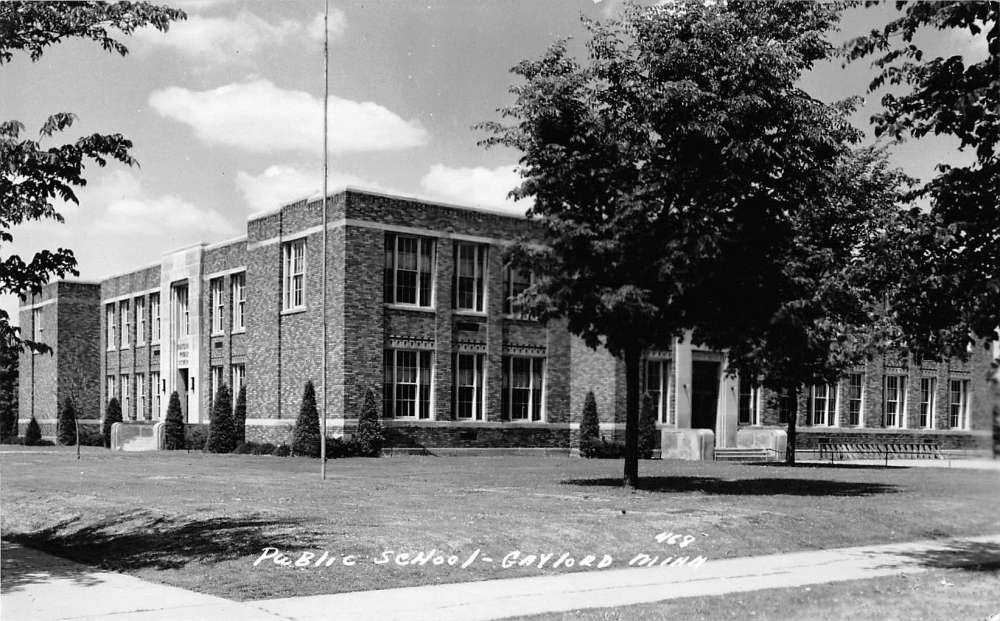 Gaylord Minnesota bird's eye view local public school entrance Real photo PC