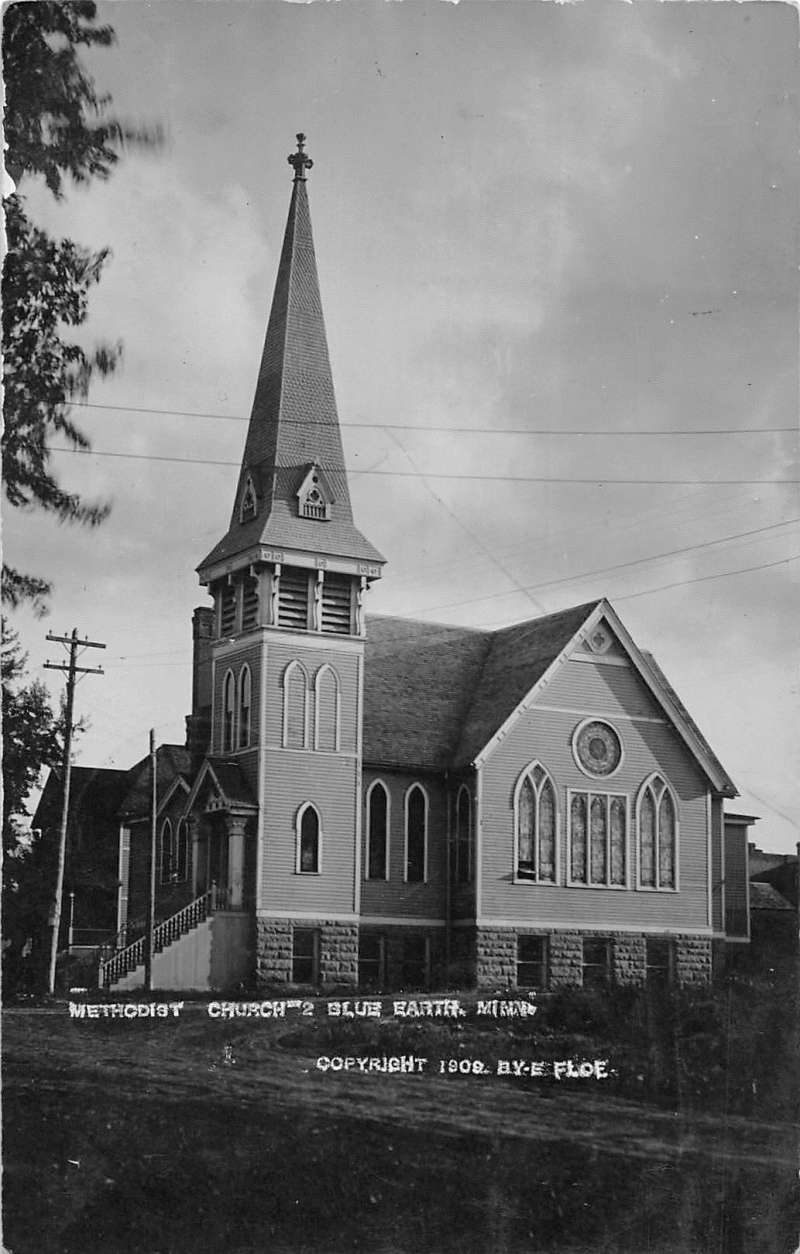Blue Earth Minnesota birds eye view Methodist Church Real photo PC Z10886