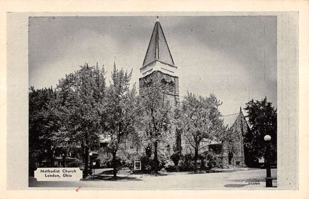 London Ohio Methodist Church Exterior Street View Antique Postcard K17897