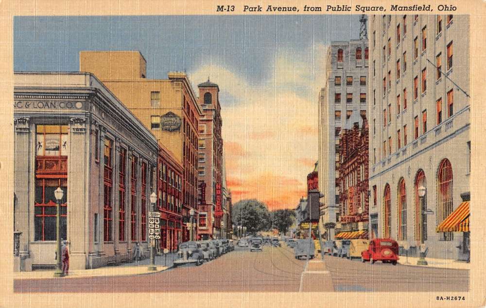 Mansfield Ohio Park Ave From Public Square Linen Antique Postcard K17967
