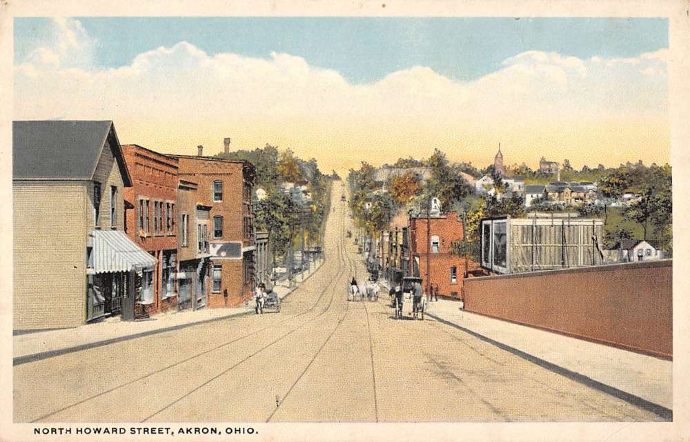 Akron Ohio Street Scene Store Fronts Historic Bldgs Antique Postcard K18109