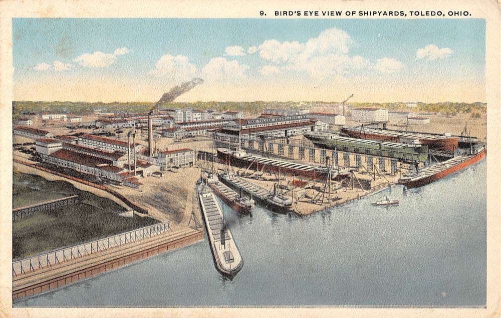 Toledo Ohio Shipyards Birdseye View Antique Postcard K18266