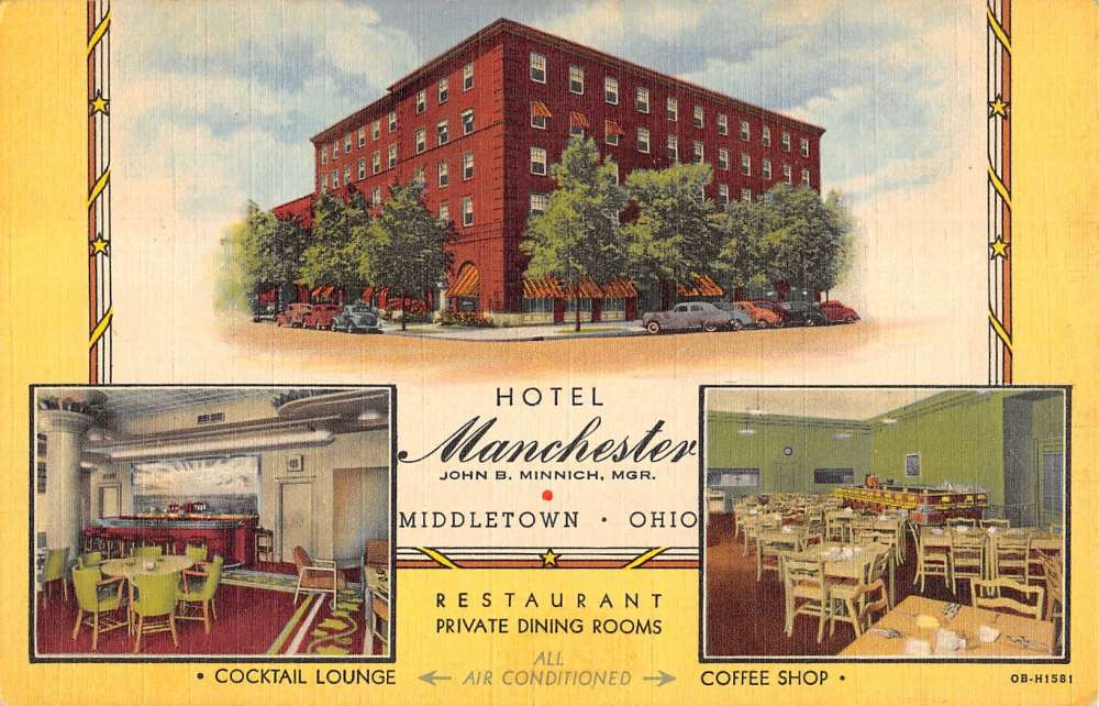 Middletown Ohio Hotel Manchester Multiview Linen Antique Postcard K19127