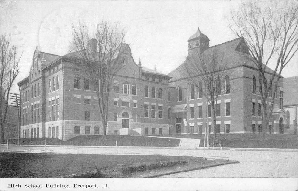 Freeport Illinois High School Building Street View Antique Postcard K19978