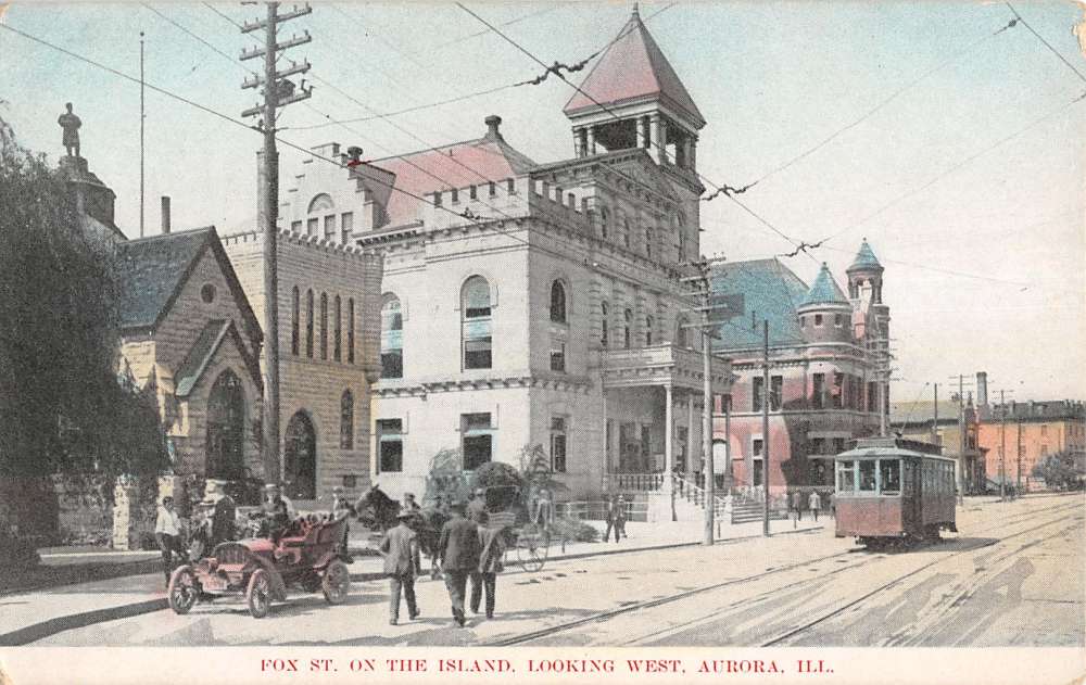 Aurora Illinois Fox Street Trolley Carriages Antique Postcard K11152