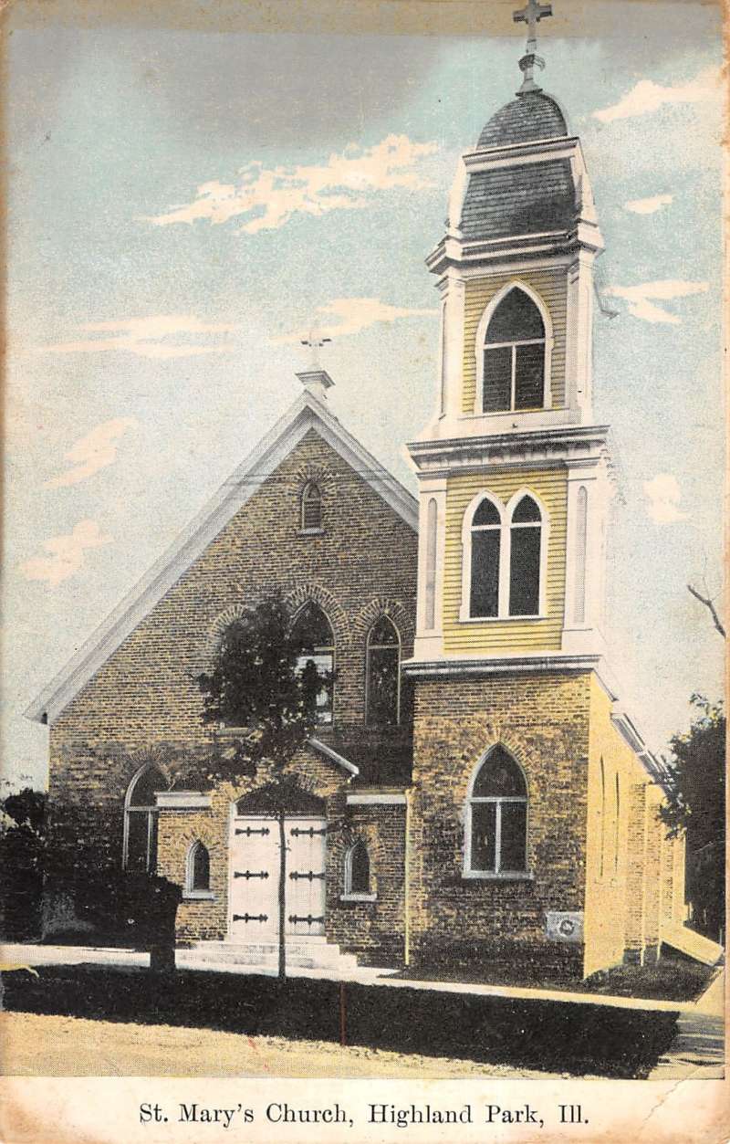 Highland Park Illinois St Marys Church Exterior Antique Postcard K11206