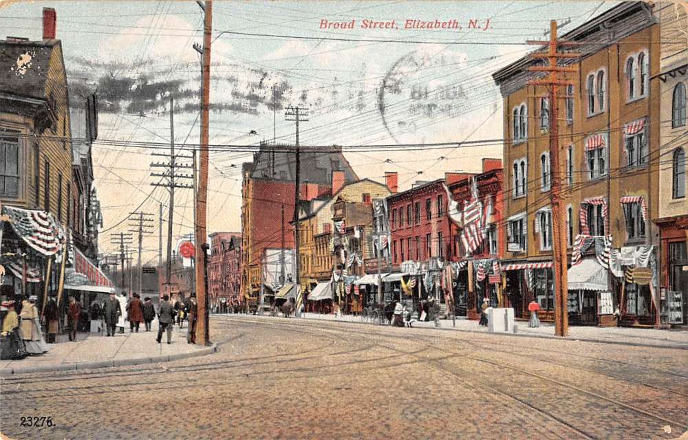 Elizabeth New Jersey Broad Street Scene Antique Postcard K9493