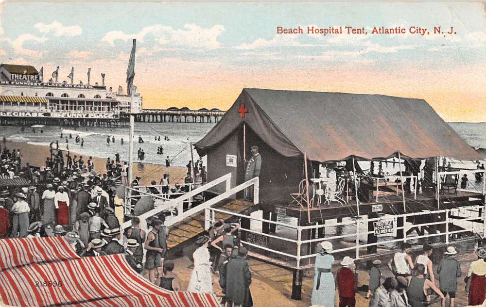 Atlantic City New Jersey Beach Hospital Tent Crowd Scene Antique Postcard K9501