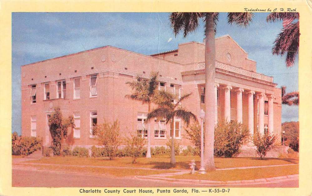 Punta Gorda Florida Charlotte Court House Street View Antique Postcard K90306
