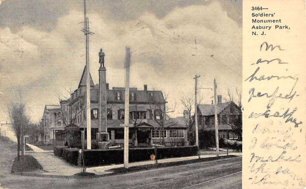 Asbury Park New Jersey Soldiers Monument Street View Antique Postcard K89099