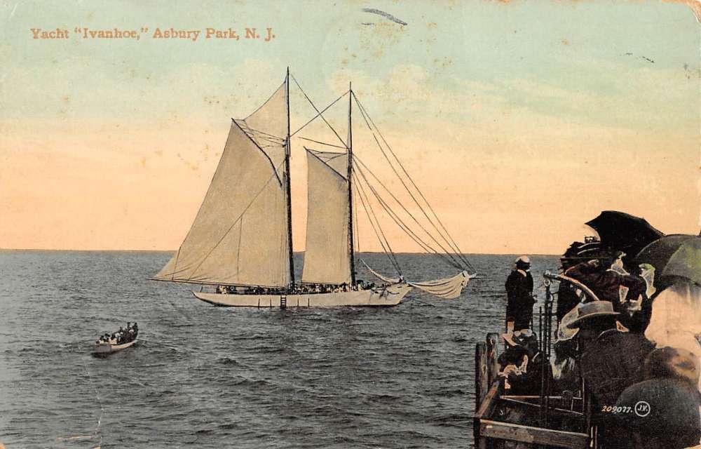 Asbury Park New Jersey Yacht Ivanhoe Sail Boat Antique Postcard K89100