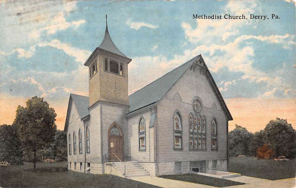Derry Pennsylvania Methodist Church Street View Antique Postcard K87526