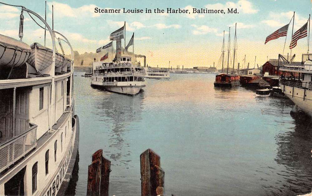 Baltimore Maryland Steamer Louise In Harbor Antique Postcard K87482