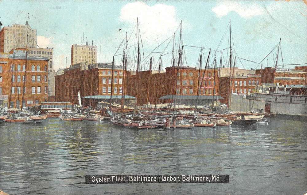 Baltimore Maryland Harbor Oyster Fleet Waterfront Antique Postcard K87483