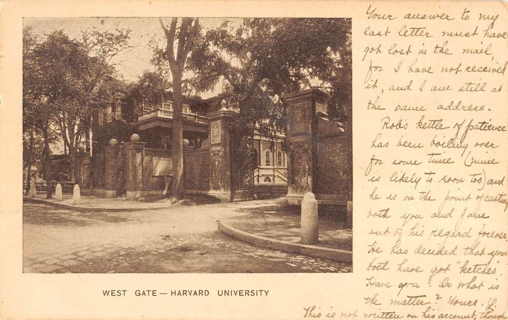 Boston Massachusetts Harvard University West Gate Antique Postcard K86537