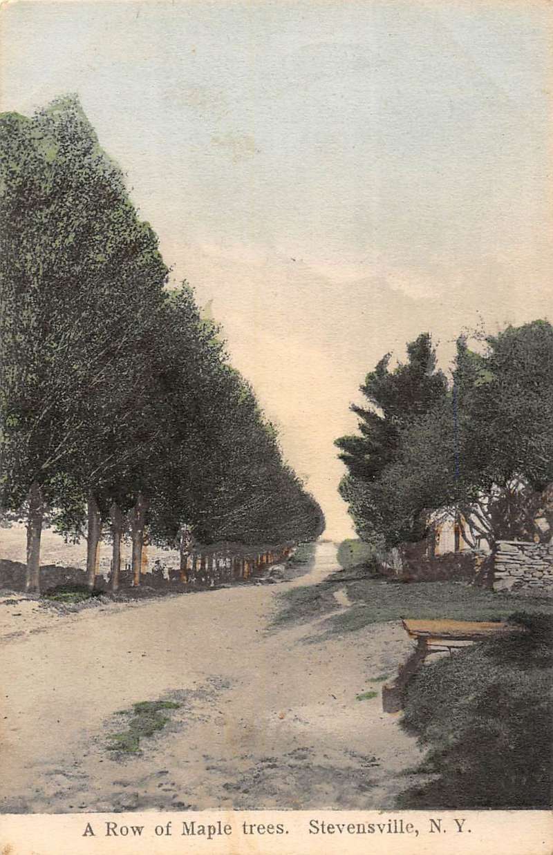 Stevensville New York Maple Tree Row Scenic View Antique Postcard K79165