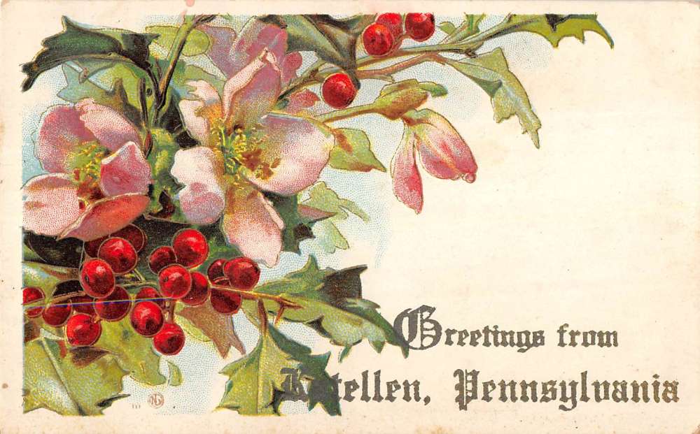 Katellen Pennsylvania Flower Berry Greeting Antique Postcard K71526