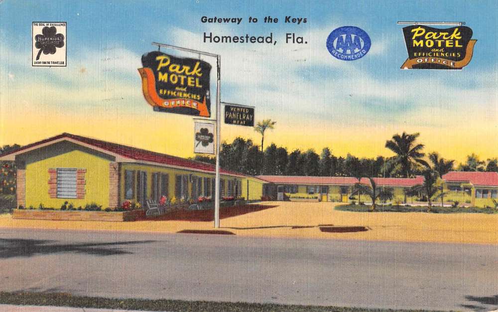 Homestead Florida Park Motel Street View Antique Postcard K71256