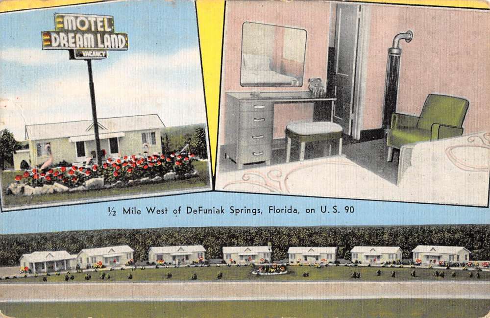 DeFuniak Springs Florida Motel Dream Land Multiview Antique Postcard K71263