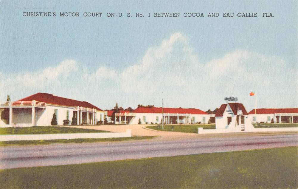Eau Gallie Florida Christines Motor Court Street View Antique Postcard K71265