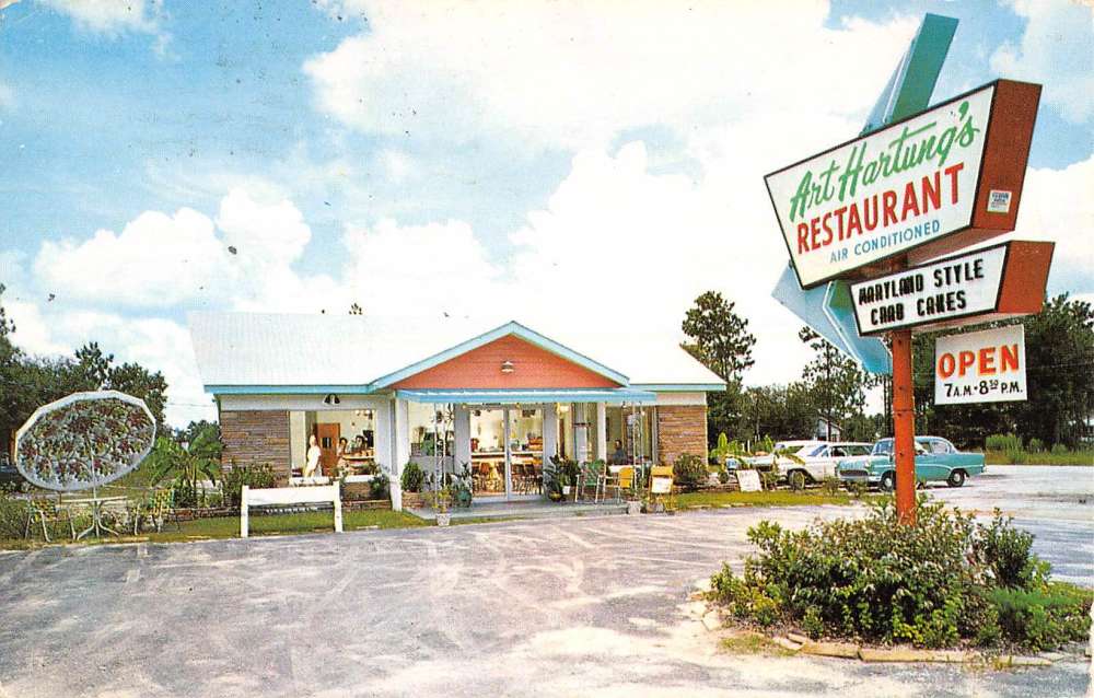 Orange City Florida Art Hartungs Restaurant Street View Vintage Postcard K71271