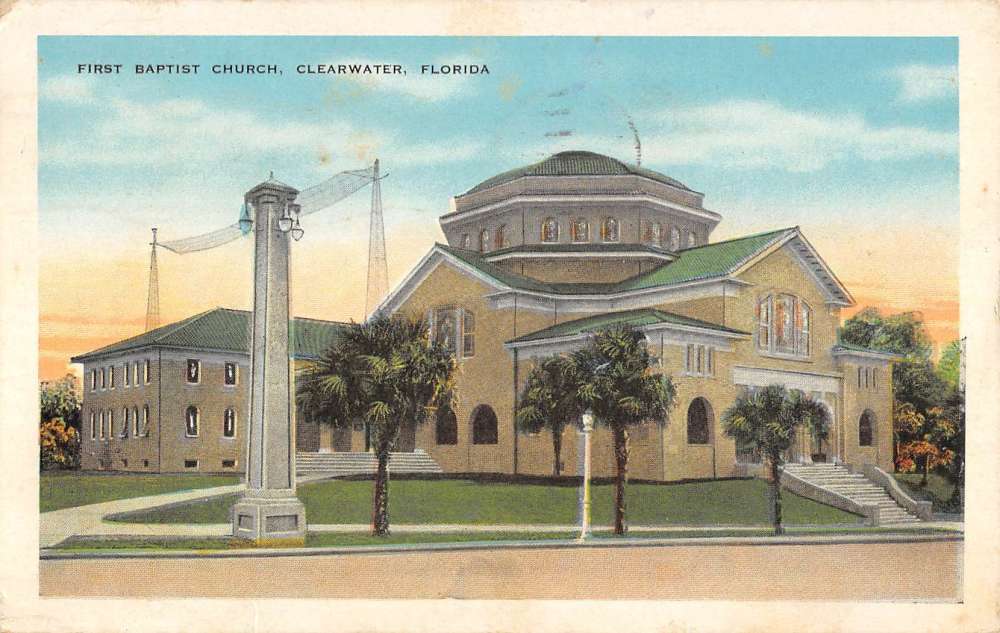 Clearwater Florida First Baptist Church Street View Antique Postcard K70581