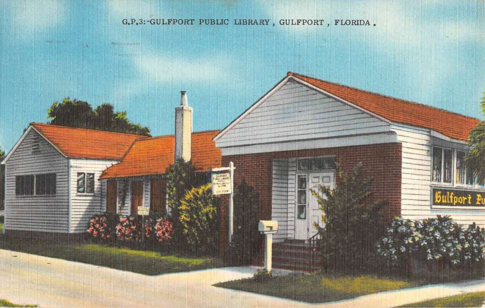 Gulfport Florida Public Library Street View Antique Postcard K70534