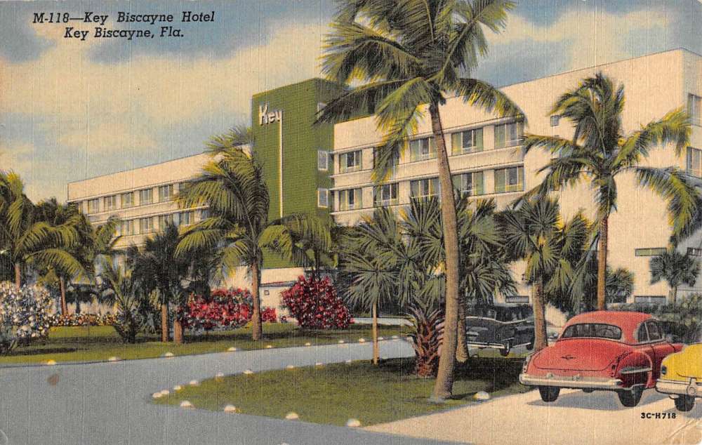 Key Biscayne Florida Hotel Street View Antique Postcard K70541