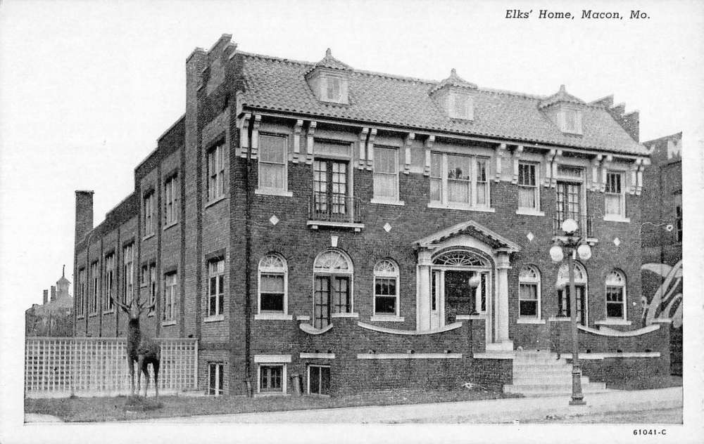 Macon Missouri Elks Home Street View Antique Postcard K70096