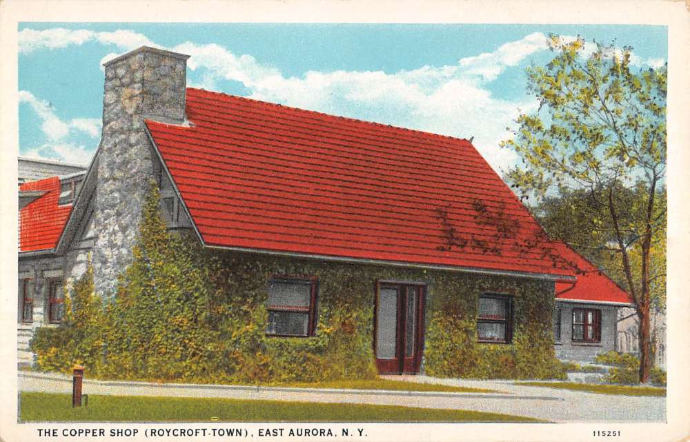 East Aurora New York copper Shop Street View Antique Postcard K70048