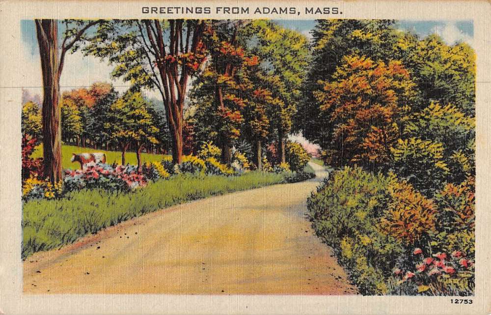 Adams Massachusetts Cow Street Scene Greeting Antique Postcard K69231