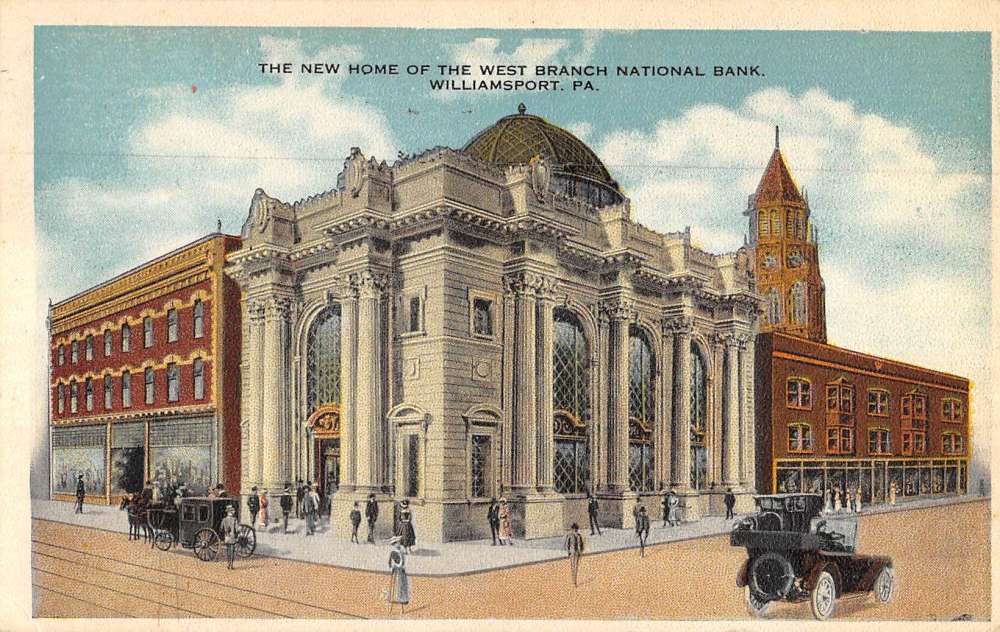 Williamsport Pennsylvania National Bank Street View Antique Postcard K69264