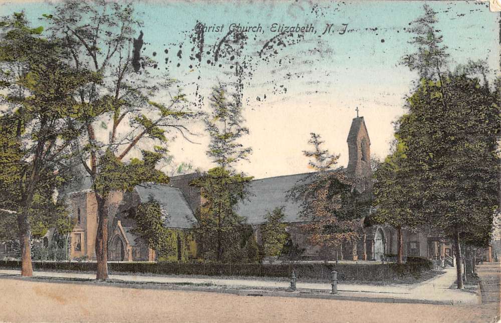 Elizabeth New Jersey Christ Church Street View Antique Postcard K67778