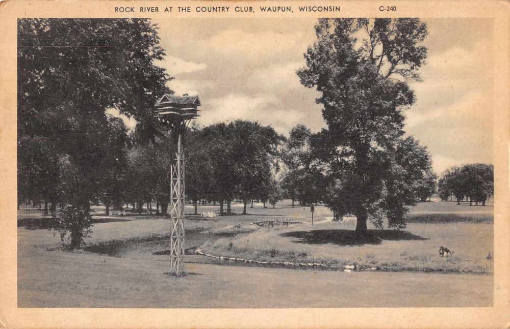 Waupun Wisconsin view of Rock River at the Country Club antique pc Z43958